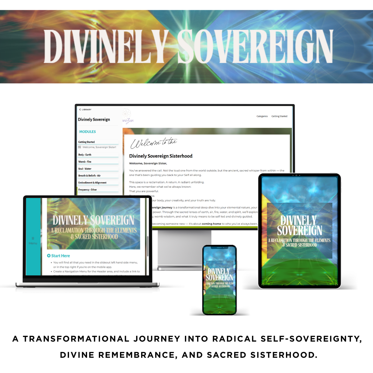 Divinely Sovereign is a Sacred Sisterhood with monthly membership or year long enrollment options. Inside, you’ll find sisterhood, belonging, and a sacred space to reconnect to your body, your womb, your heart, and your power.